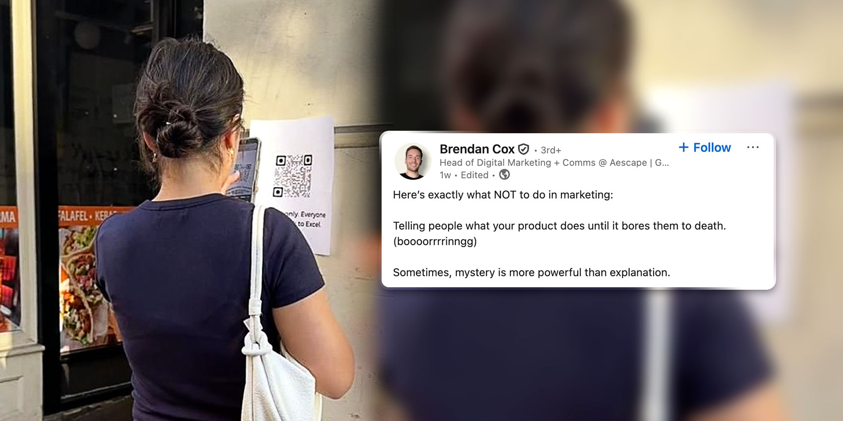 Brendan Cox, Head of Digital Marketing and Communications at Aescape, echoed the sentiment: “Don’t tell people what your product does. Make them want to find out.”